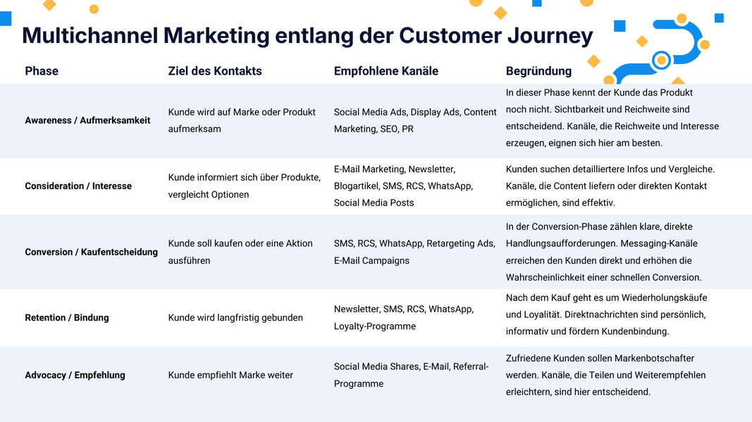 In frühen Phasen stehen Orientierung und Vertrauen im Vordergrund. Hier eignen sich Inhalte, die informieren und Mehrwert bieten, etwa über E-Mail, Website oder Social Media. Je näher eine Person an eine Entscheidung rückt, desto relevanter werden klare Impulse und zeitnahe Hinweise. Mobile Kanäle wie SMS, WhatsApp oder RCS unterstützen genau diesen Moment.